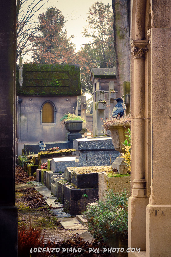 Crows on the Graves in Pere Lachaise Graveyard